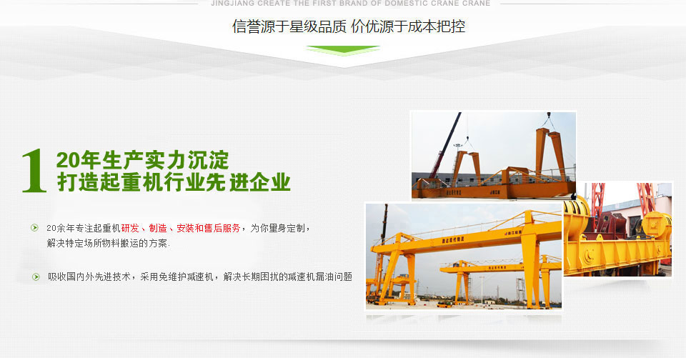 靖江市起重設備廠家直銷懸臂起重機、固定式懸臂起重機、單雙梁橋式起重機、簡易門式起重機、電動葫蘆門式起重機型號齊全,價格合理 - 座落在美麗富饒的江浙平原,魚米之鄉--江蘇省靖江市,位于長江之濱。毗鄰江陰長江公路大橋, 與江陰、張家港隔江相望,緊鄰上海、南京、蘇州、無錫等發達的大中城市,經濟環境和地理位置得天獨厚。 緊靠京滬、寧通高速公路 公路和水路交通極為便利。